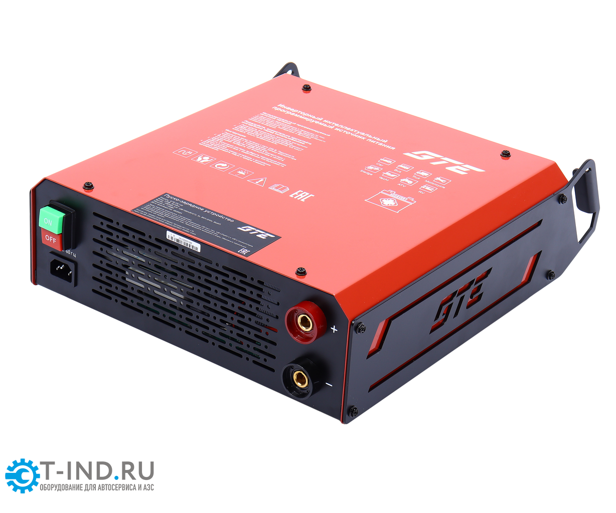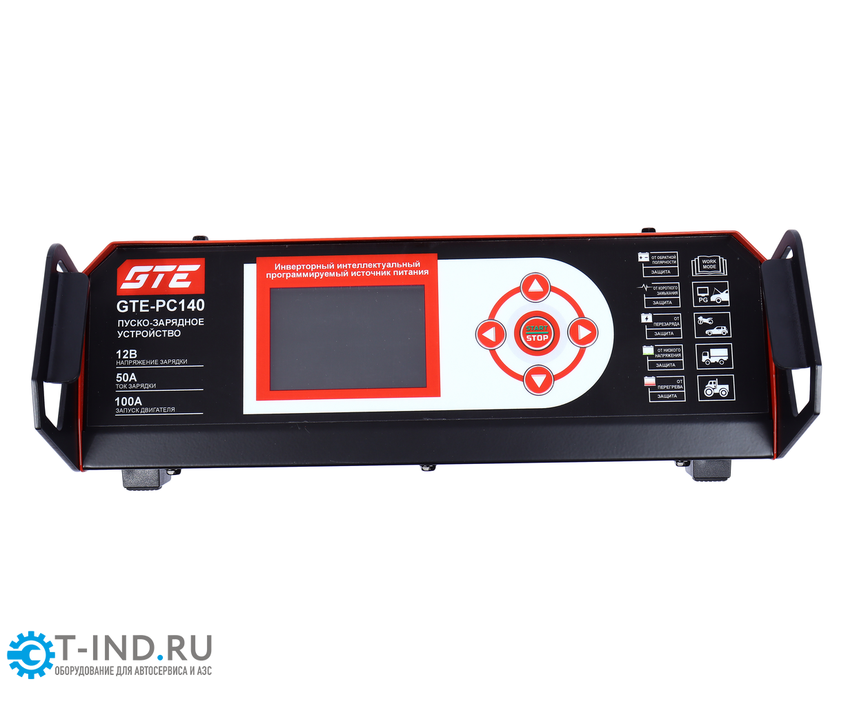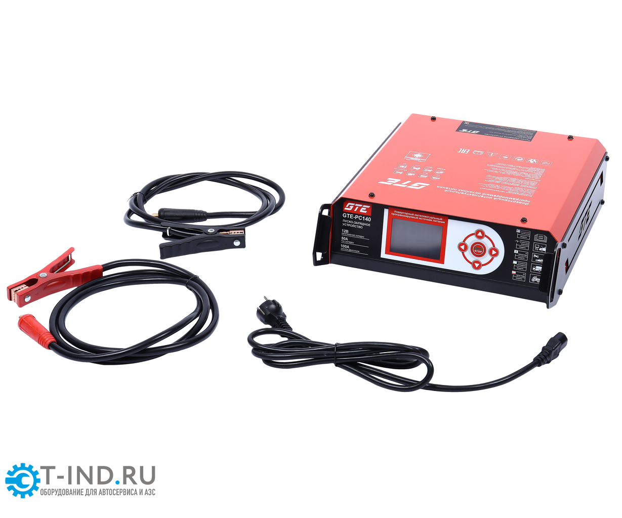 GTE-PC140 — компактное пуско-зарядное устройство для зарядки аккумуляторов 12 В и аварийного запуска двигателей с пусковым током до 100 А, подходящее для автосервисов, СТО и частного использования.