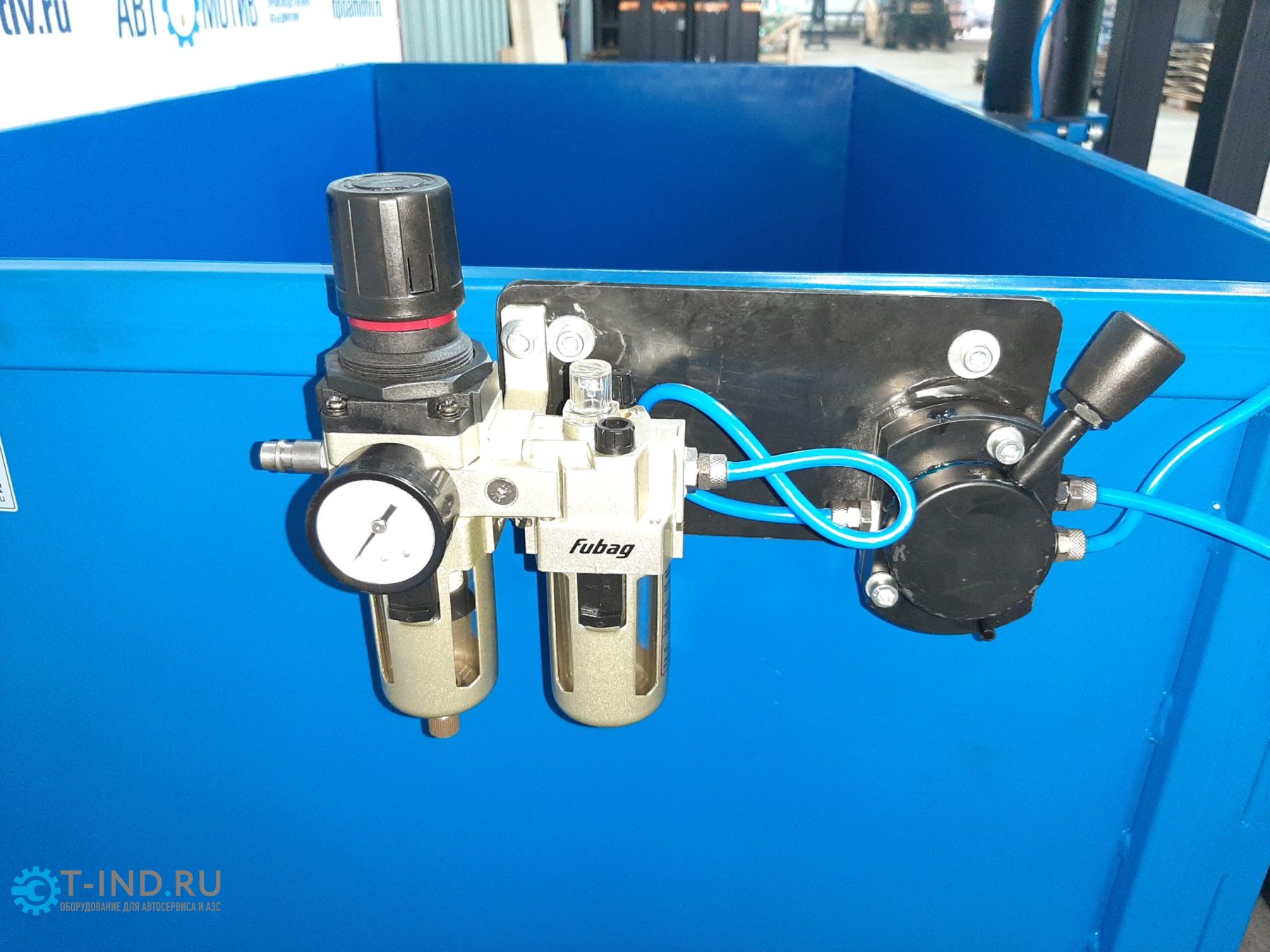 Управление ванной осуществляется пневматическим механизмом, что позволяет добиться высокой точности в работе. В комплект поставки входит также воздушный фильтр, который необходим для надежной работы с пневматическим оборудованием.