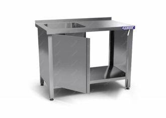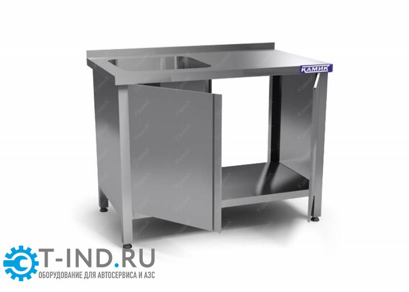 Одна емкость цельнот. из ст AISI 304 500*500*300 Слева. Столешница из стали AISI 430 Каркас сварной из стали AISI 430 расп. дверки, полка-дно, борт. закрыта по бокам (без задней стенки)