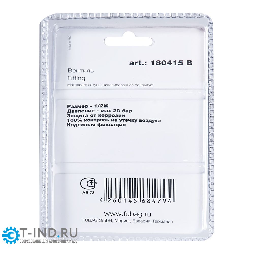 Вентиль FUBAG 180415 B, 1/2"М, блистер, 1 шт.