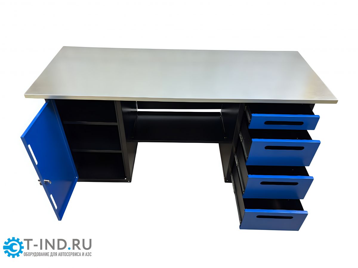 Стол-верстак инструментальный двухтумбовый Great Wolf GWT-V1800B предназначен для выполнения слесарных, столярных и множества других видов работ. Усиленная столешница (1800х700х27мм) из МДФ и оцинкованного металла позволяет закрепить тиски и производить любые силовые работы по ремонту. Тумба с 4 ящиками (3 высоких ящика 185х373х445 и один узкий 80х373х445), тумба с тремя полками (Нижняя 450х300х575, верхние 450х250х575), а также центральная полка позволяют разместить большое количество инструмента и оборудования.