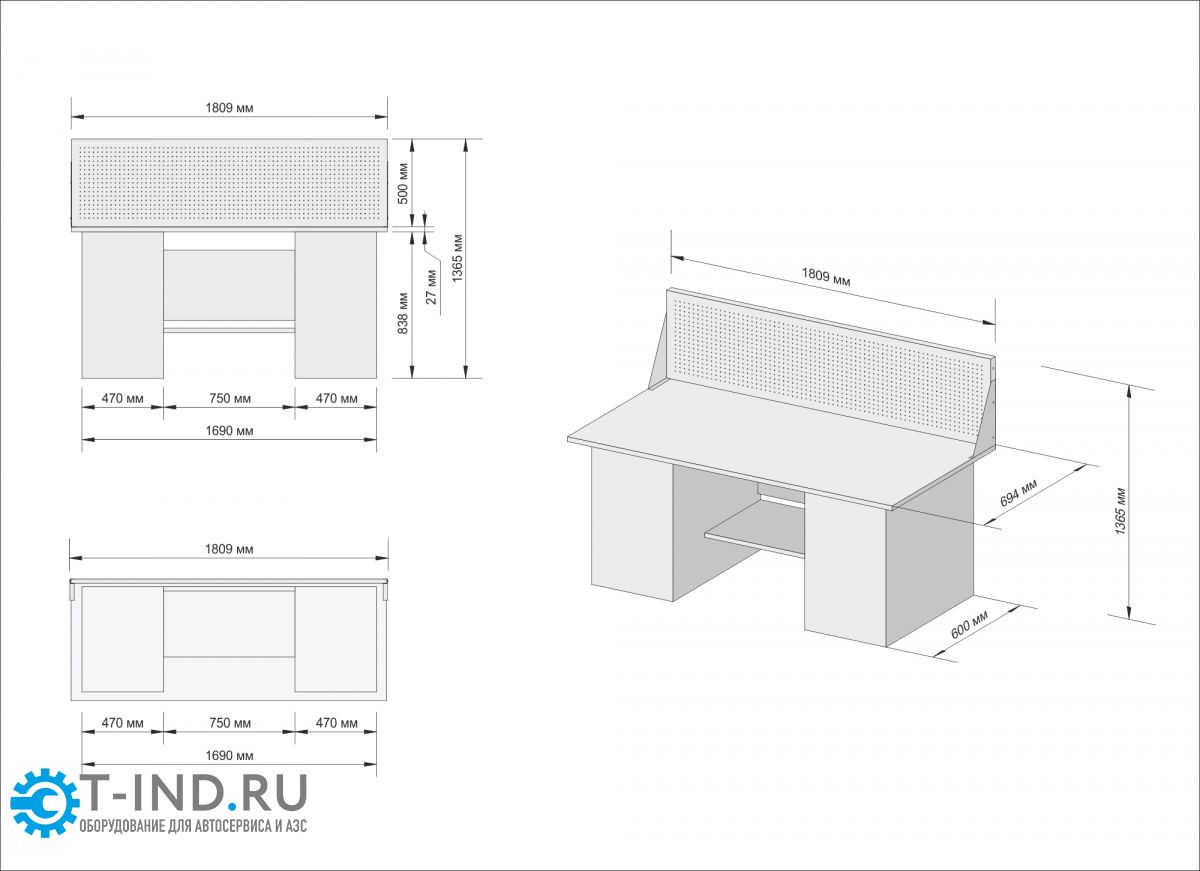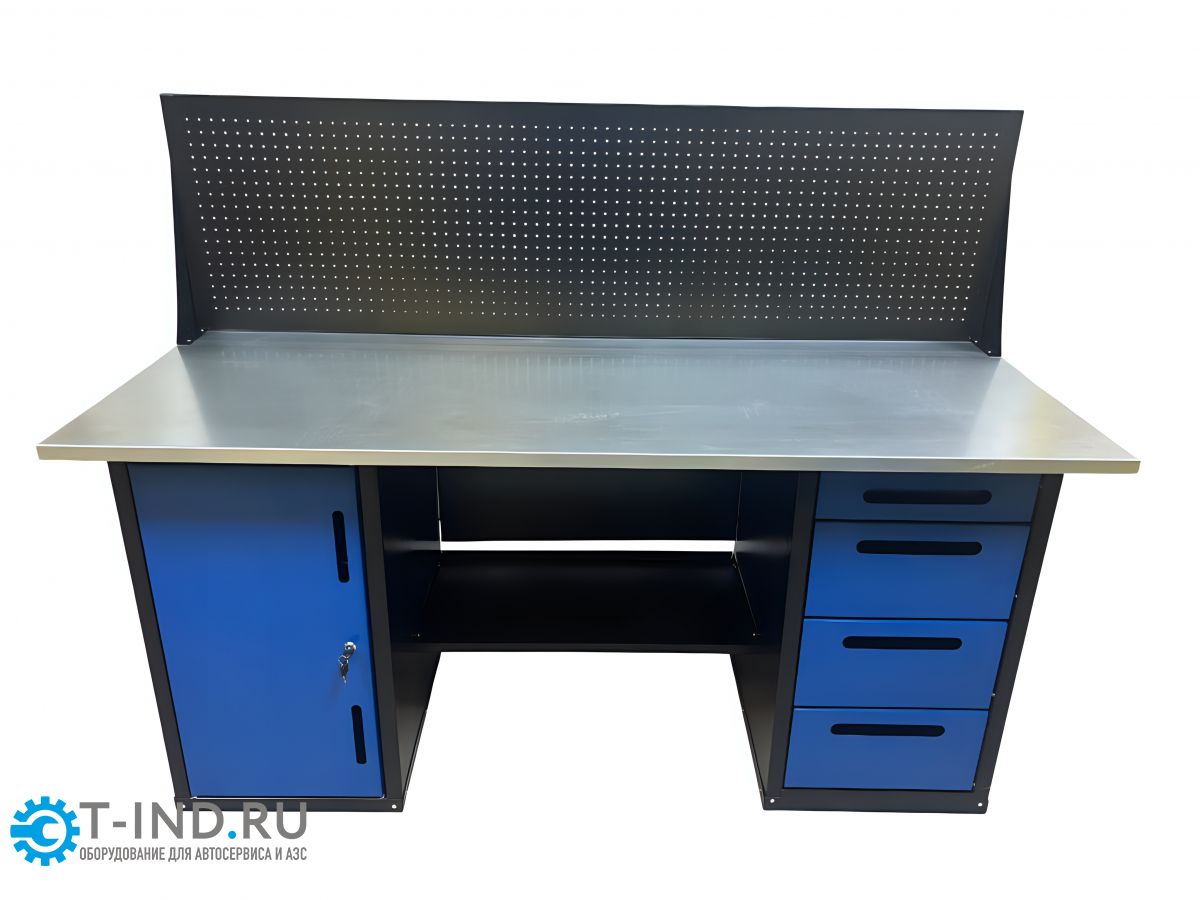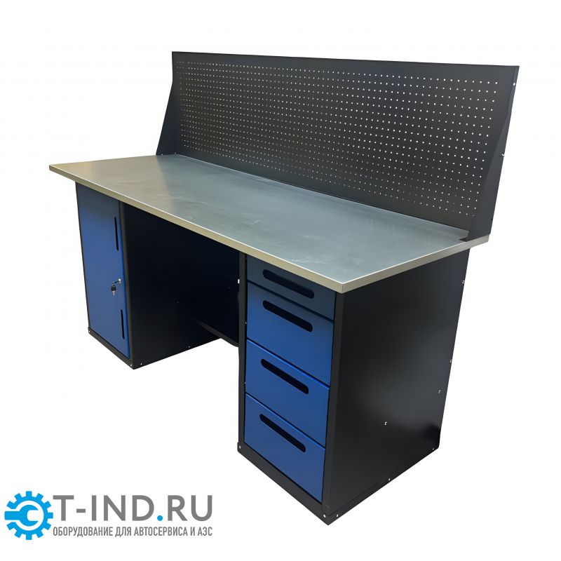 Стол-верстак инструментальный двухтумбовый Great Wolf GWT-V1800B1 предназначен для выполнения слесарных, столярных и множества других видов работ. Усиленная столешница (1800х700х27мм) из МДФ и оцинкованного металла позволяет закрепить тиски и производить любые силовые работы по ремонту. Тумба с 4 ящиками (3 высоких ящика 185х373х445 и один узкий 80х373х445), тумба с тремя полками (Нижняя 450х300х575, верхние 450х250х575), а также центральная полка позволяют разместить большое количество инструмента и оборудования.