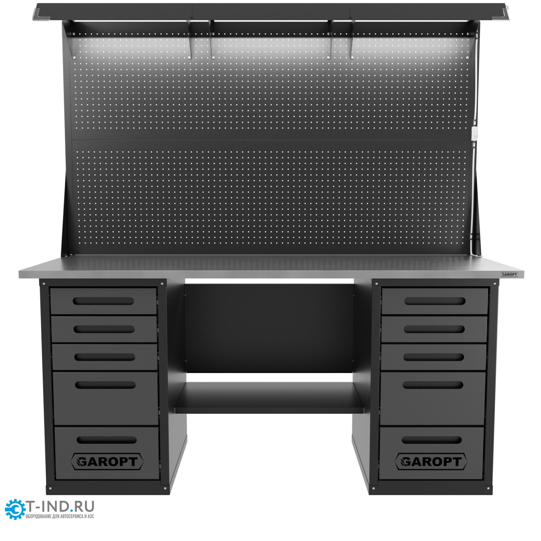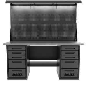 Верстак слесарный Garopt Constructor, 2 тумбы, 4+1+5 ящиков, дв. экран, подсветка, 1,8м с набором держателей