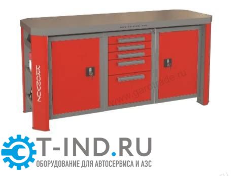 Верстак слесарный КРОН ГЕФЕСТ-ВС-151, 3 тумбы, 5 ящиков, дверцы