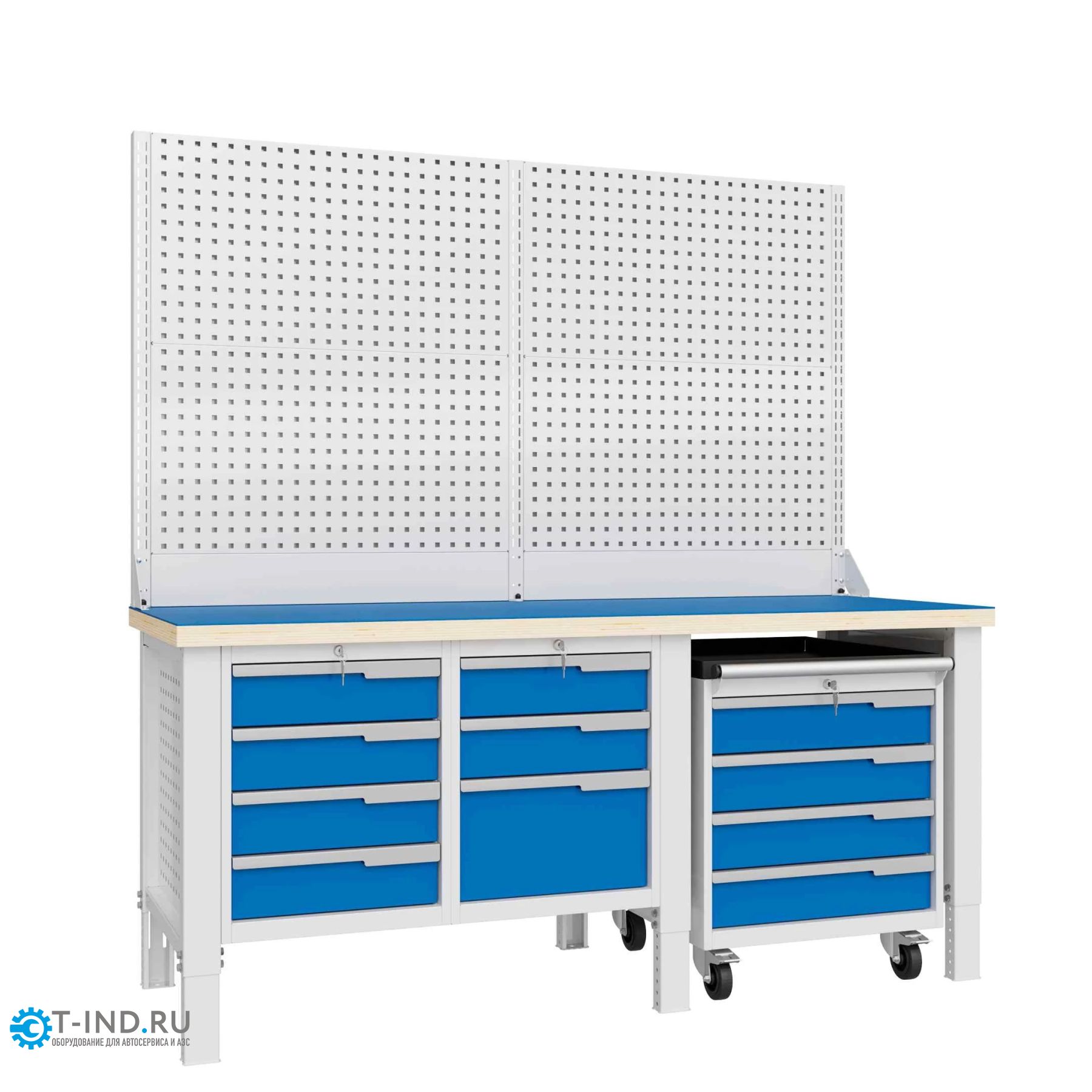 Верстак слесарный Верстакофф CTR 2032.S34M4.3-2, тумбы, 4+3+4 ящика, с дв. экраном