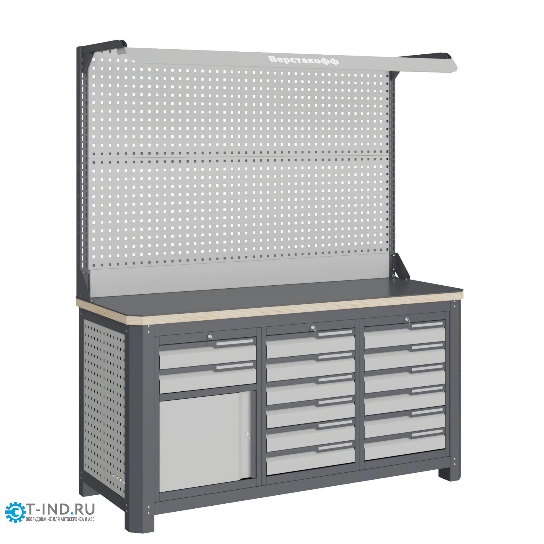 столешницы шириной 1493 мм, рамы верстака, состоящей из опор, перемычек, боковых перфопанелей, малых модулей S6 и S9, комплекта полка-стенка SW1.