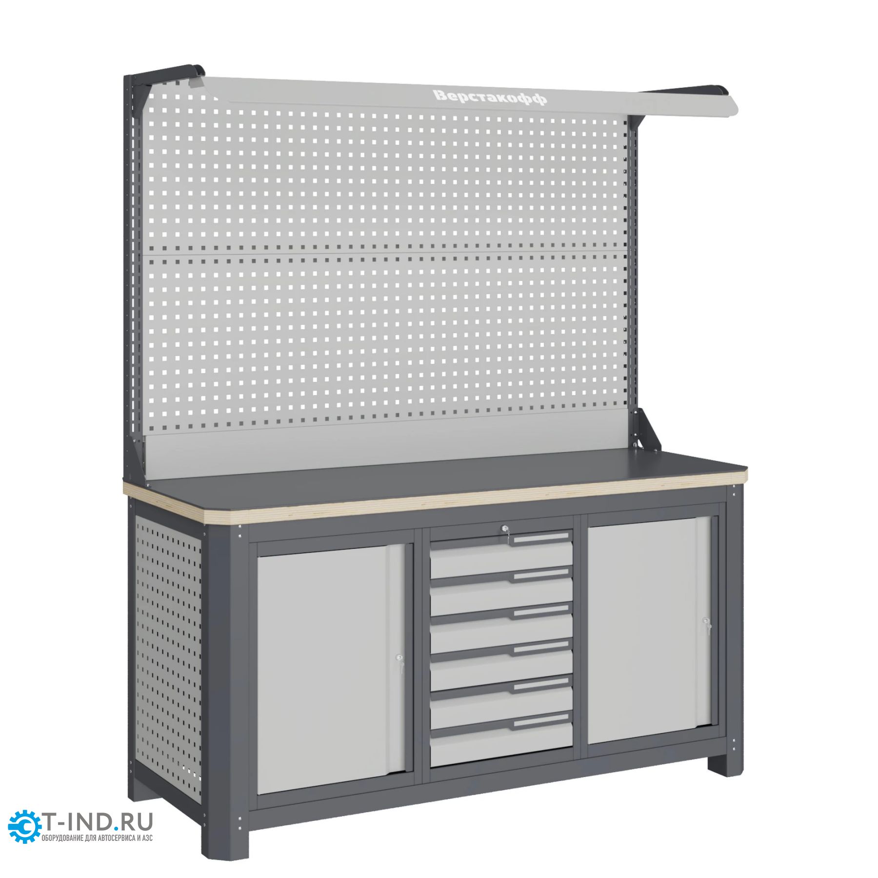 Верстак слесарный Верстакофф MCN 1552.S677-2F, 3 тумбы, 6 ящиков, с дв. экраном, подсветка
