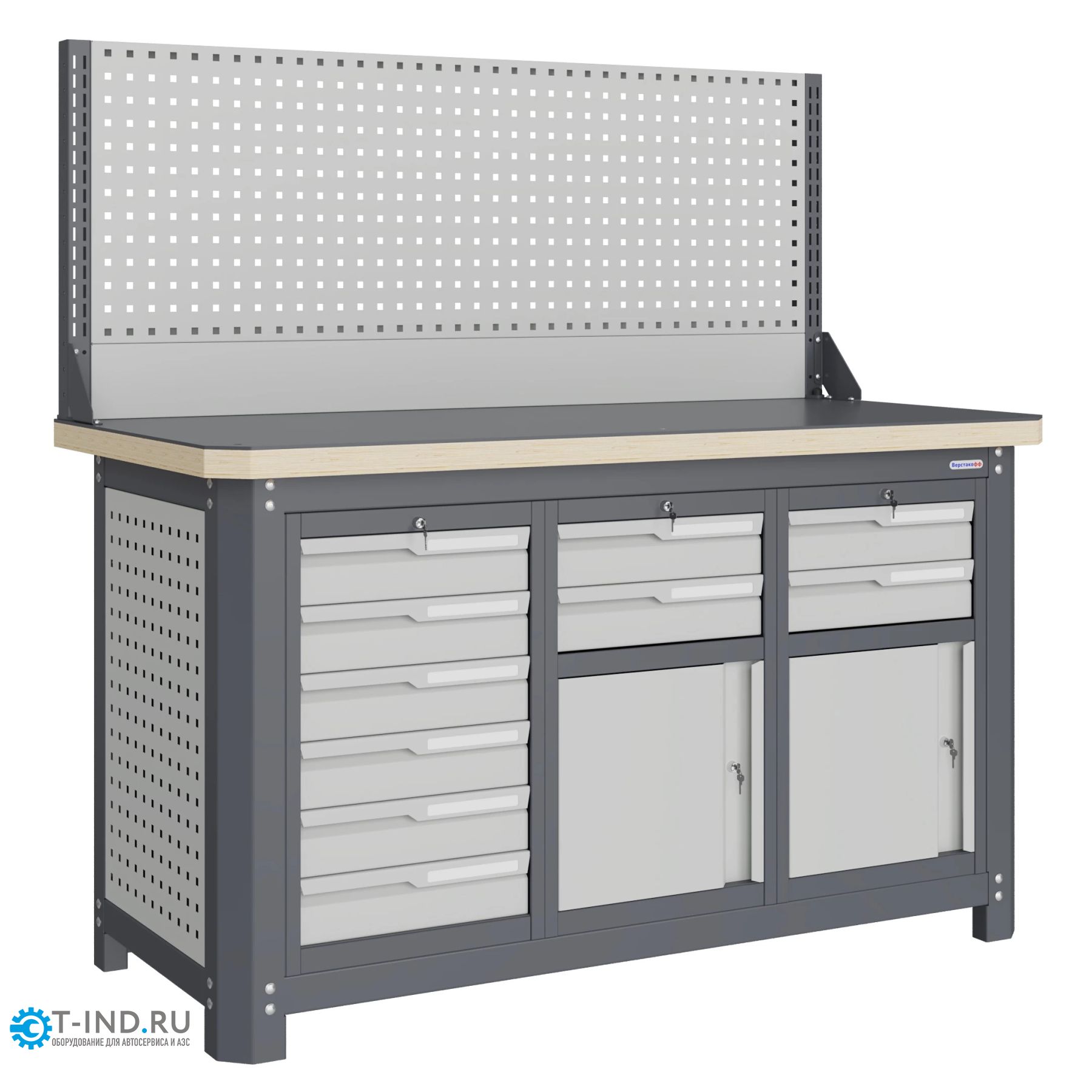Верстак слесарный Верстакофф MCN 1552.S699-1, 3 тумбы, 6+2+2 ящиков, экран