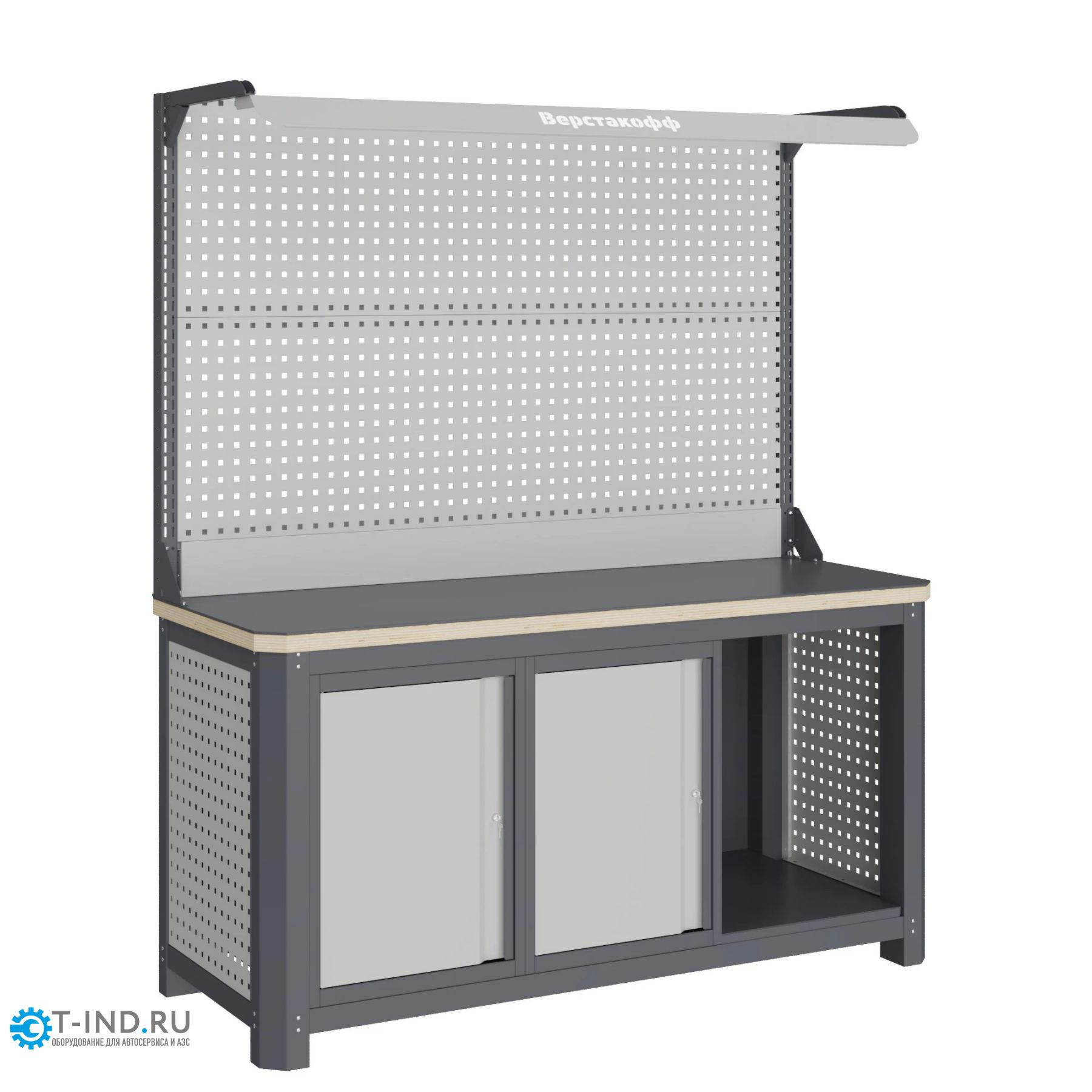 Верстак слесарный Верстакофф MCN 1552.S77.1-2F, 2 тумбы с дверцами, с дв. экраном, подсветка