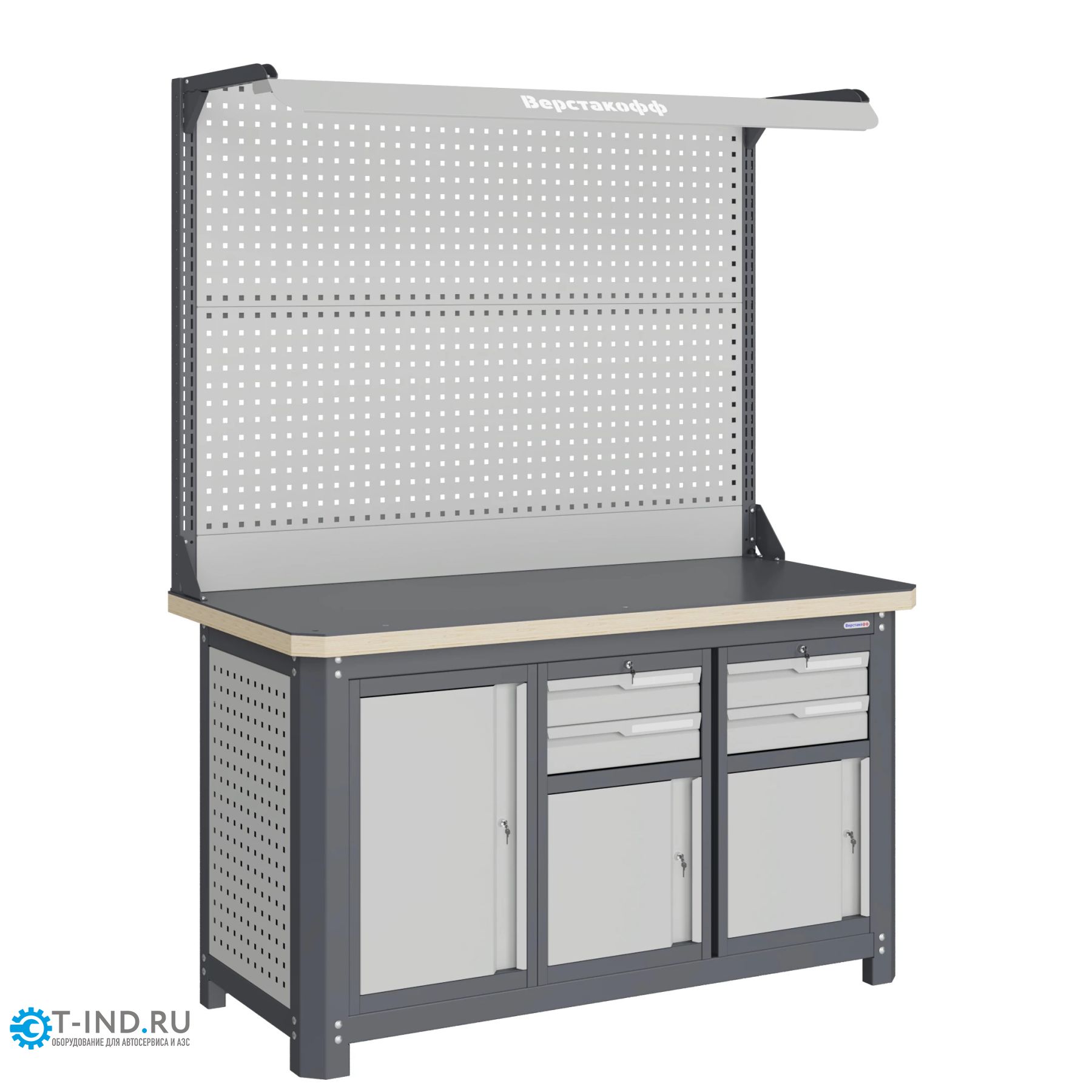 Верстак слесарный Верстакофф MCN 1552.S799-2F, 3 тумбы, 2+2 ящика, с дв. экраном, подсветка