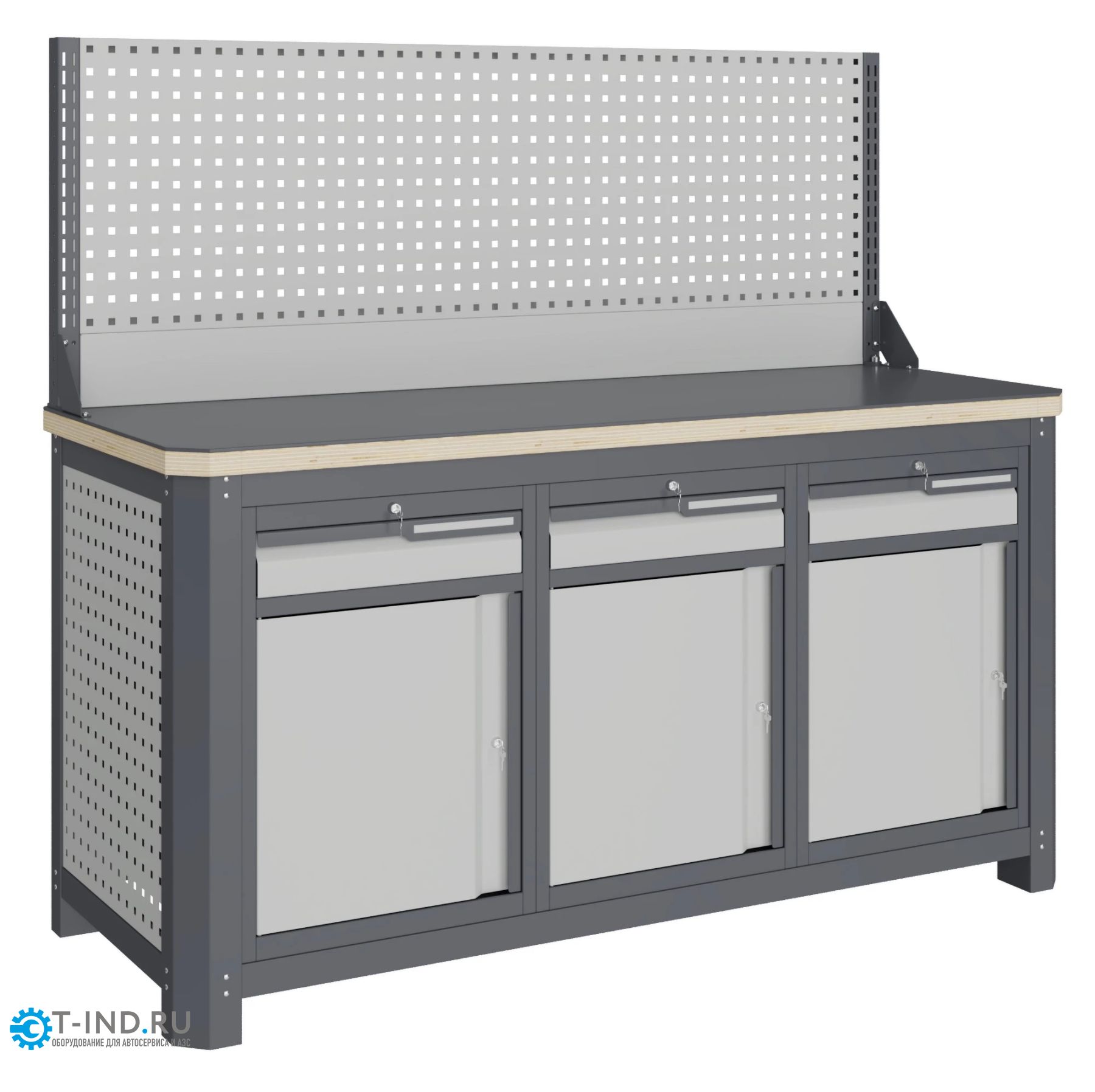 Верстак слесарный Верстакофф MCN 1552.S888-1, 3 тумбы, 1+1+1 ящика, экран