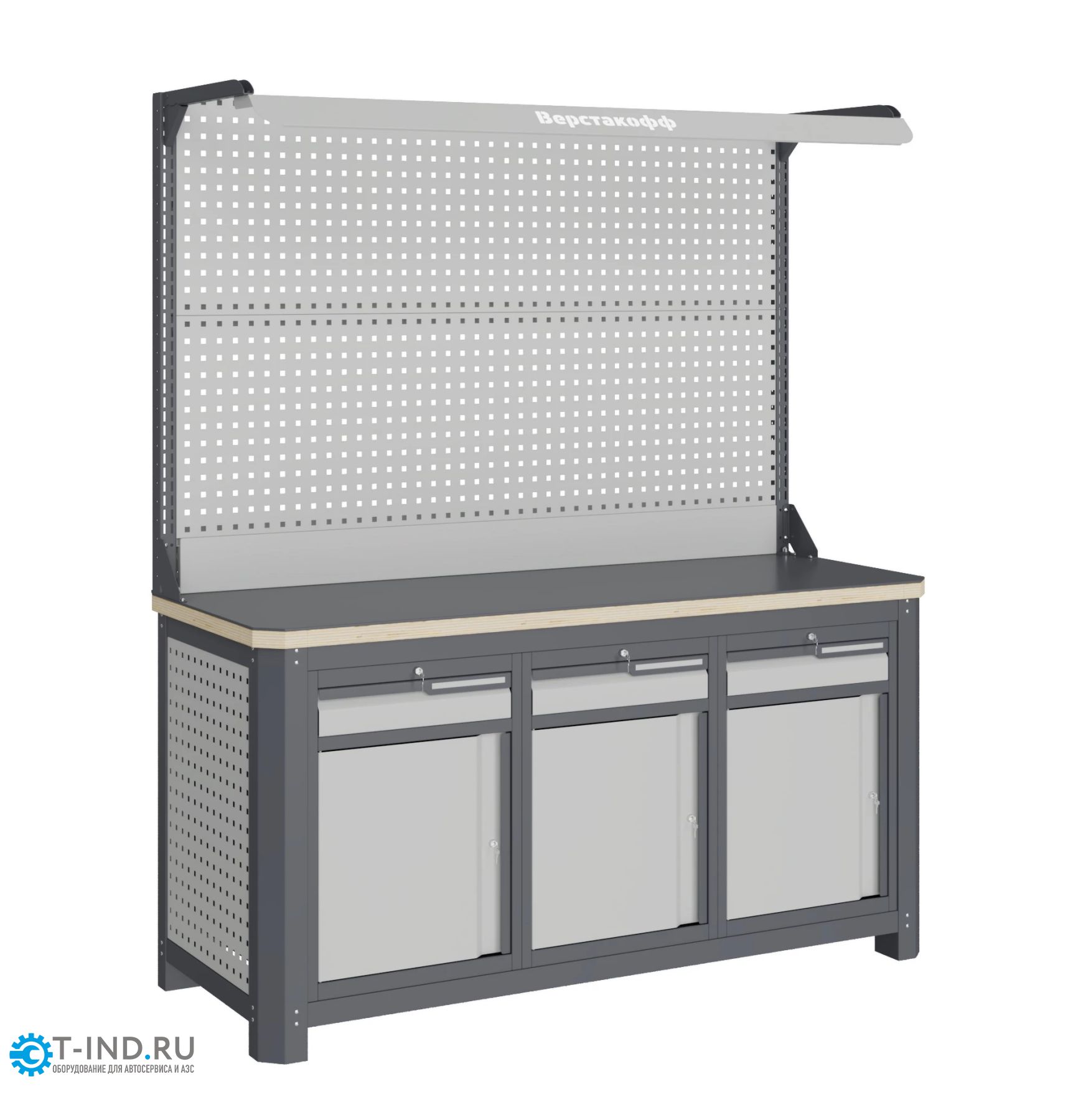Верстак слесарный Верстакофф MCN 1552.S888-2F, 3 тумбы, 1+1+1 ящика, с дв. экраном, подсветка