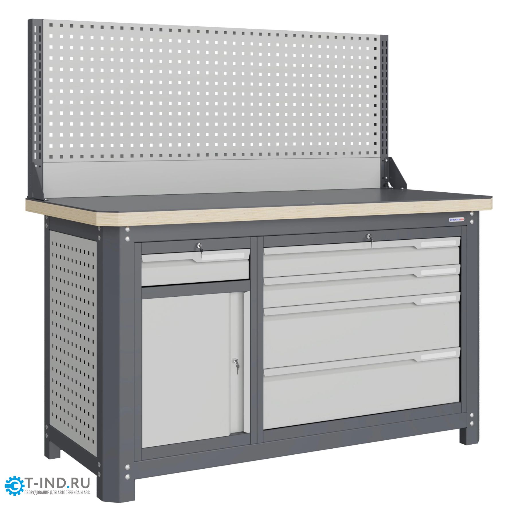 Верстак слесарный Верстакофф MCN 1552.S8L4-1, 2 тумбы, 1+4 ящика, экран