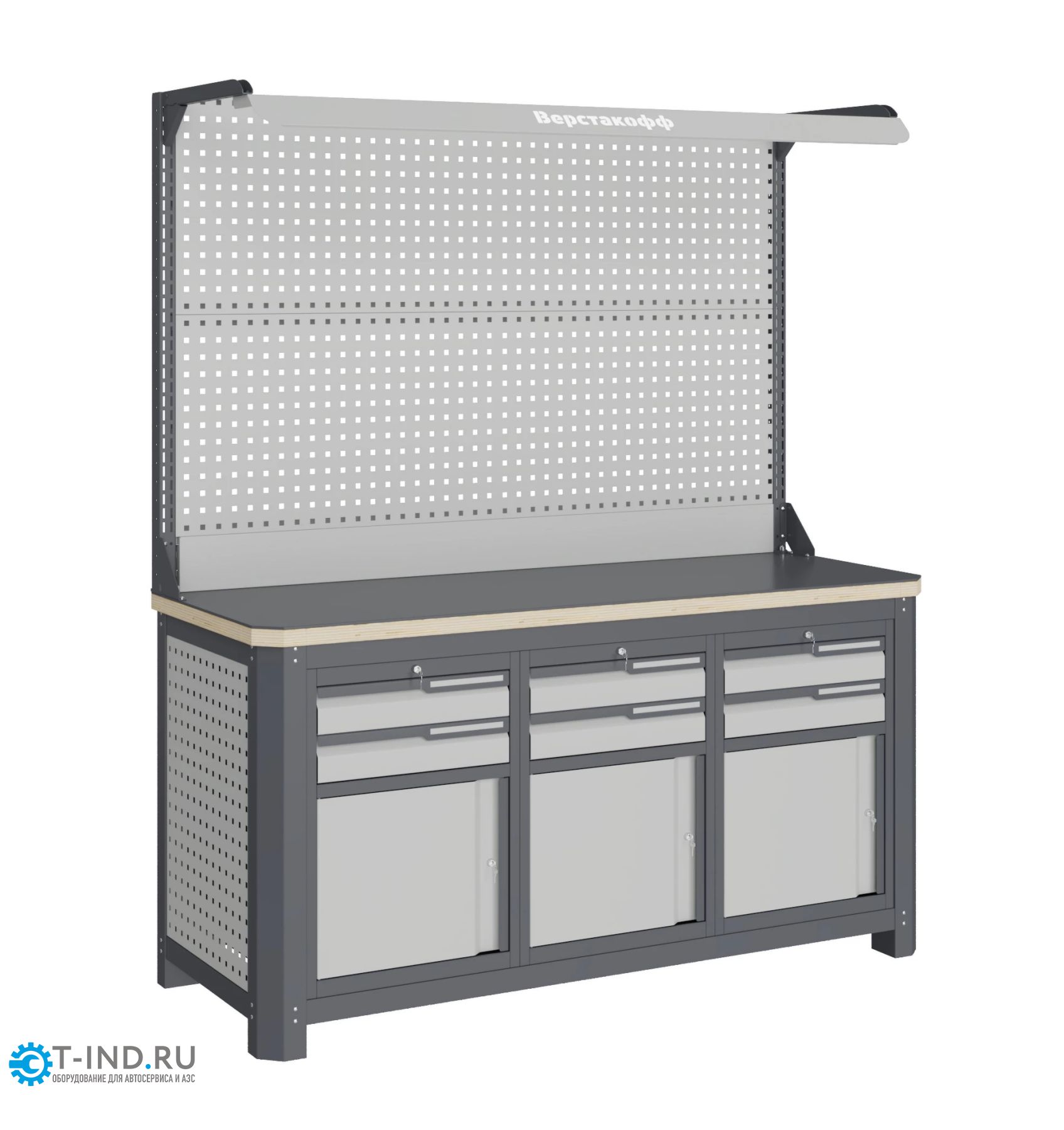 Верстак слесарный Верстакофф MCN 1552.S999-2F, 3 тумбы, 2+2+2 ящика, с дв. экраном, подсветка