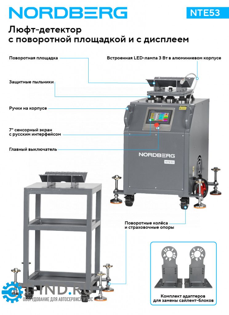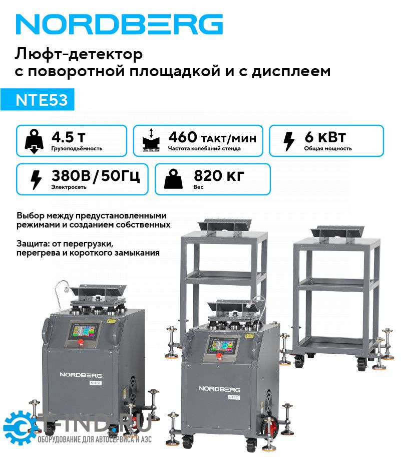 NORDBERG NTE53 – люфт-детектор для диагностики подвески, предназначенный для использования на СТО, в автосервисах и на предприятиях, специализирующихся на техническом обслуживании автотранспорта. Предназначен для имитации реальных дорожных условий и диагностики подвески и рулевого управления. Помогает выявить люфты, стуки, скрипы и другие проблемы в элементах подвески, рулевого управления и кузова, возникающие при езде. Идеально подходит для точного ремонта и предотвращения поломок.