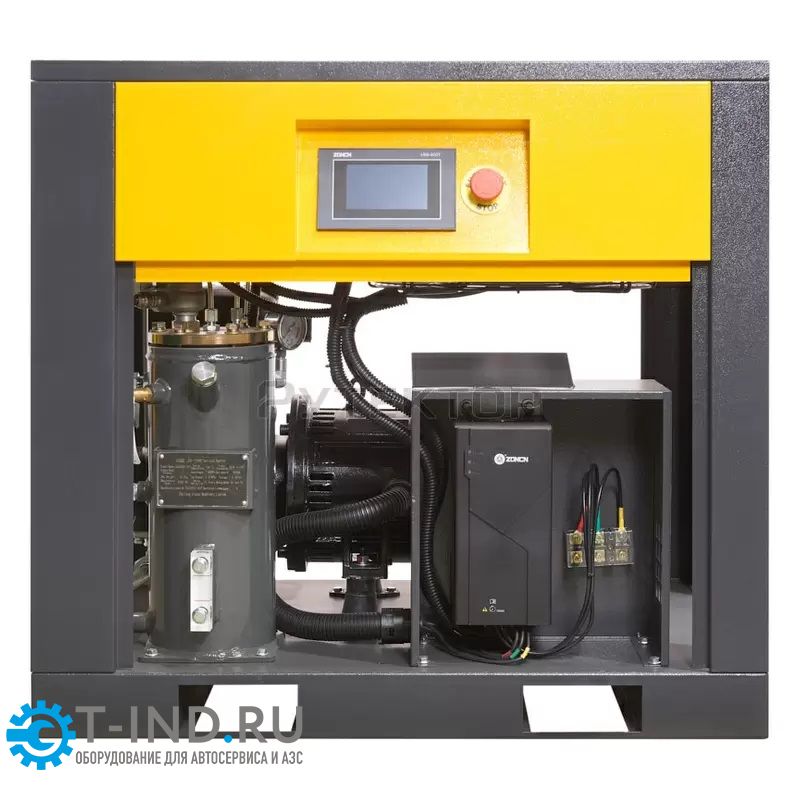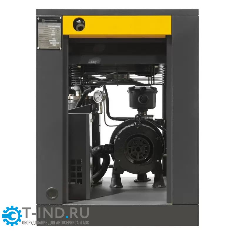- Низкий уровень шума также достигается применением шумопоглощающих панелей, установкой электродвигателя и винтового блока на виброопорах.