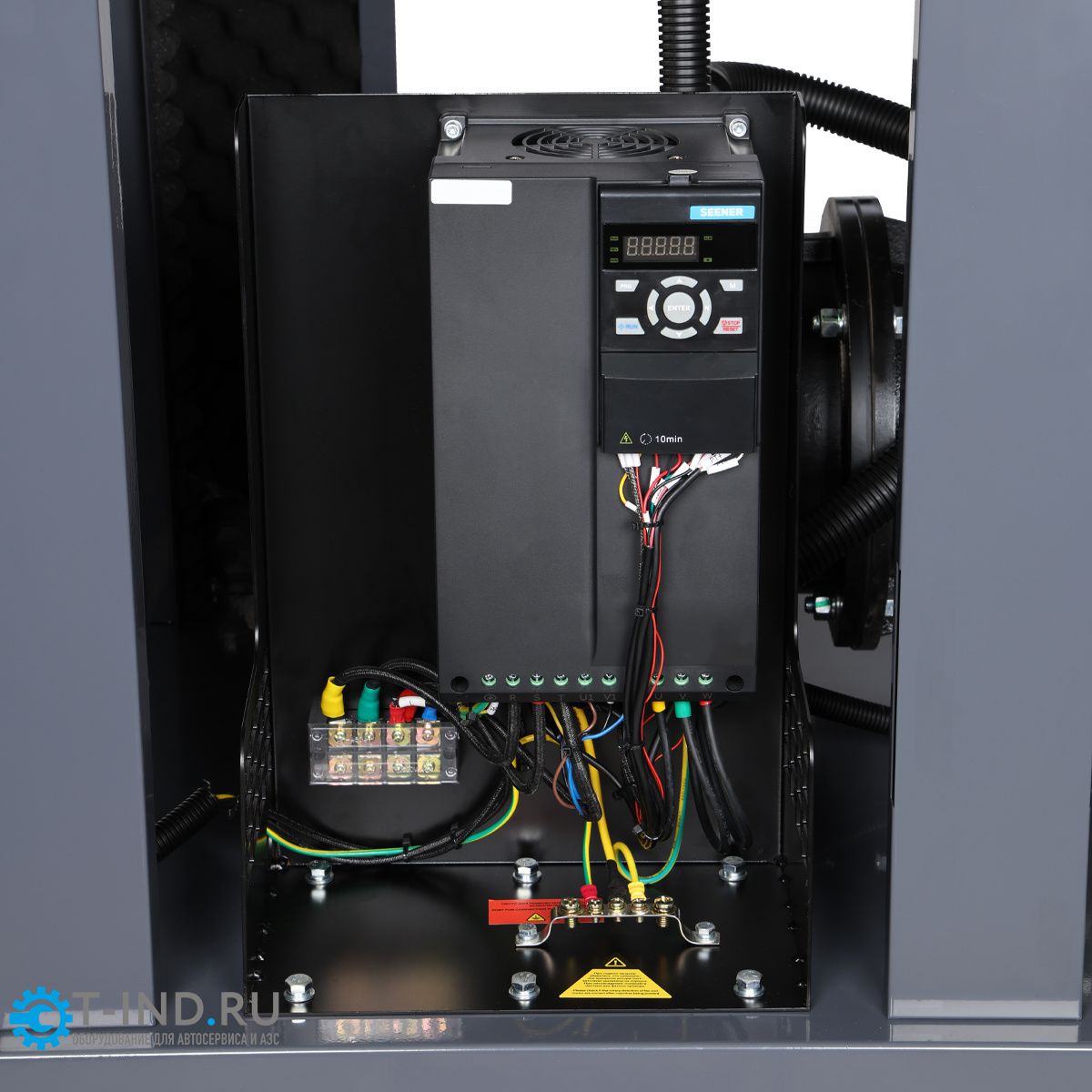 - Плавный запуск компрессора – защита электросети и снижение износа компонентов двигателя;