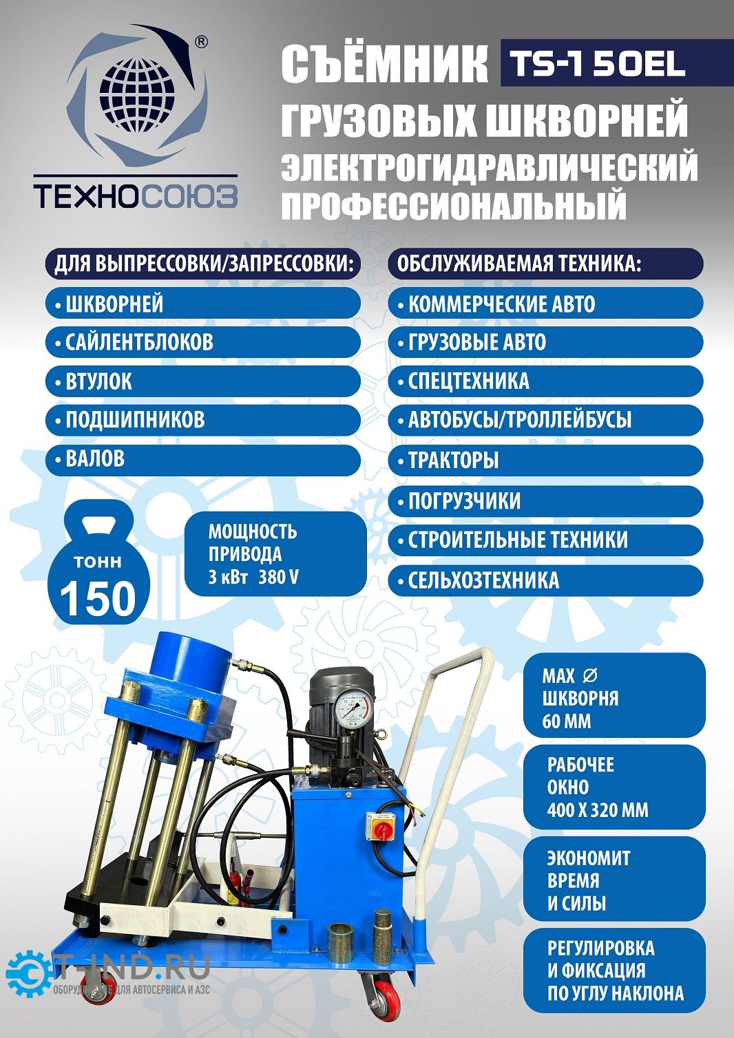 Выпрессовщик шкворней (шкворнедав) Техносоюз TS-150EL, электрогидравлический, 150 тонн