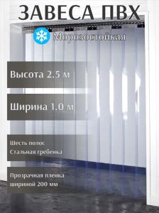 Завеса ПВХ прозрачная морозостойкая, 2,5мх1м