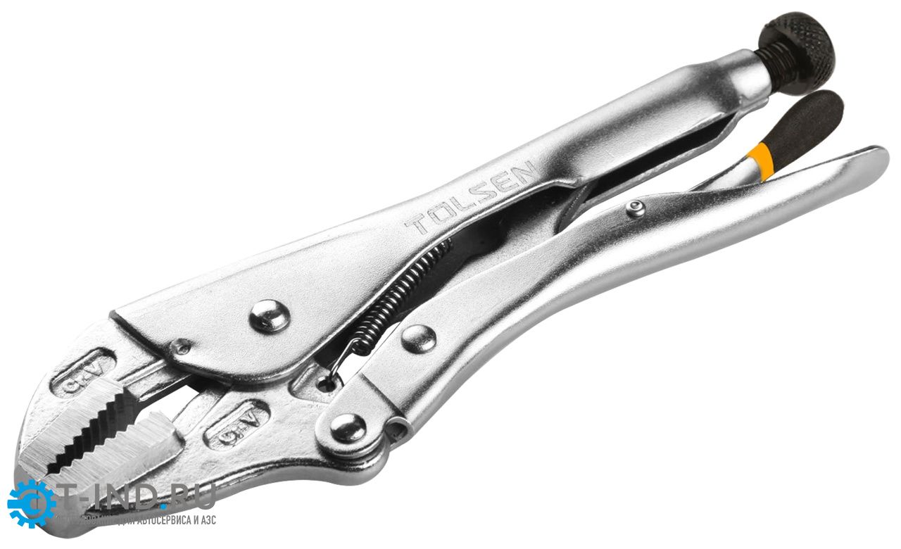 Зажим струбцины с фиксатором и прямыми губками TOLSEN TT10048 предназначен для зажима листового металла, профильных изделий и прочих конструкций для проведения сварочных работ. Регулировочный винт поможет подогнать размер зева под габариты места захвата и отрегулировать усилие зажима.